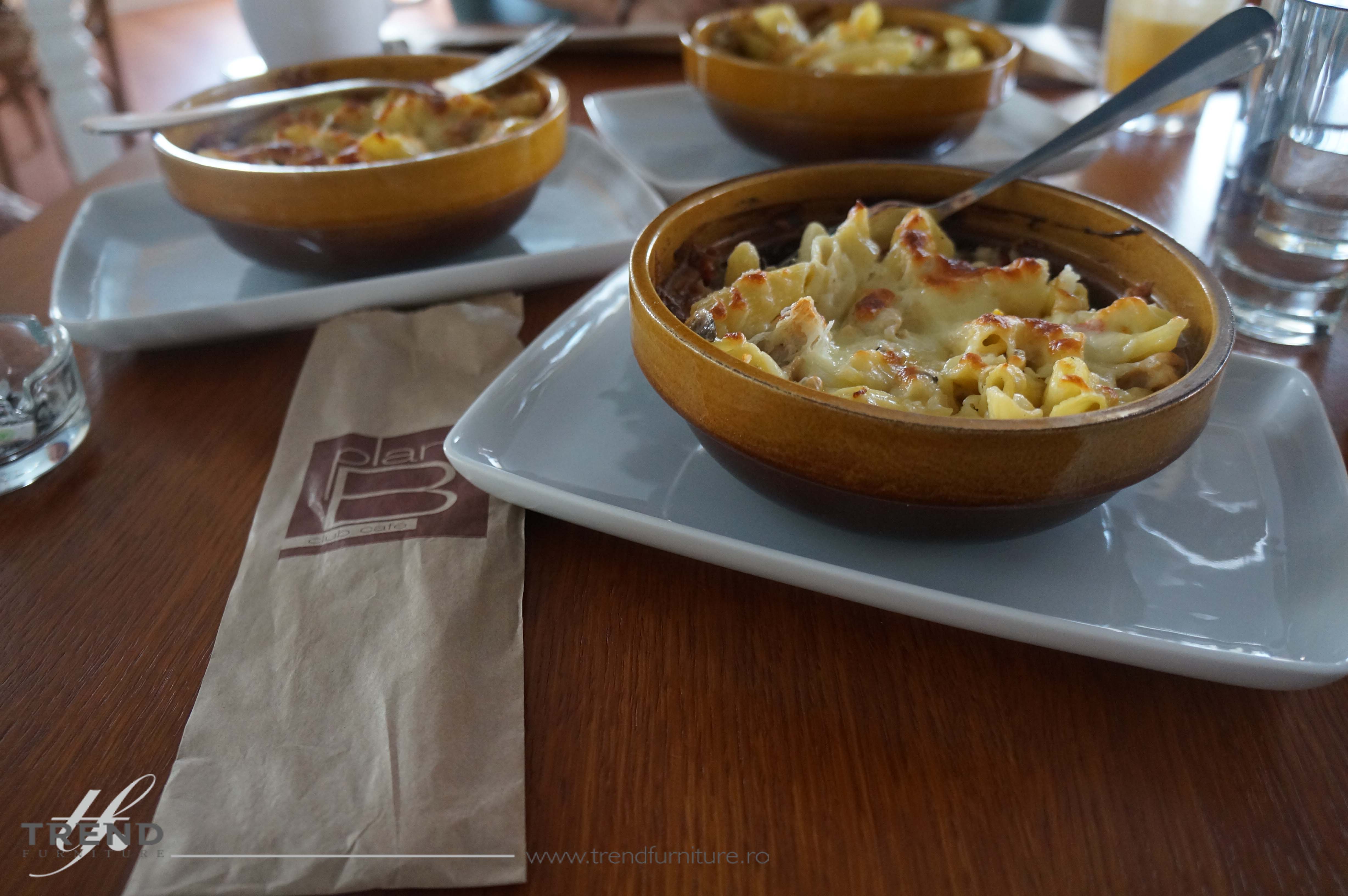In orice caz, in ceea ce priveste mancarea si fresh-ul de portocale, va putem spune "pe incercatea" ca sunt delicioase. In vizita noastra la Plan B am avut si gustoasa placere de a incerca (inainte de a fi oficiale) delicioasele paste la cuptor, cu carne de pui, porc sau vegetariene si un delicios burger.