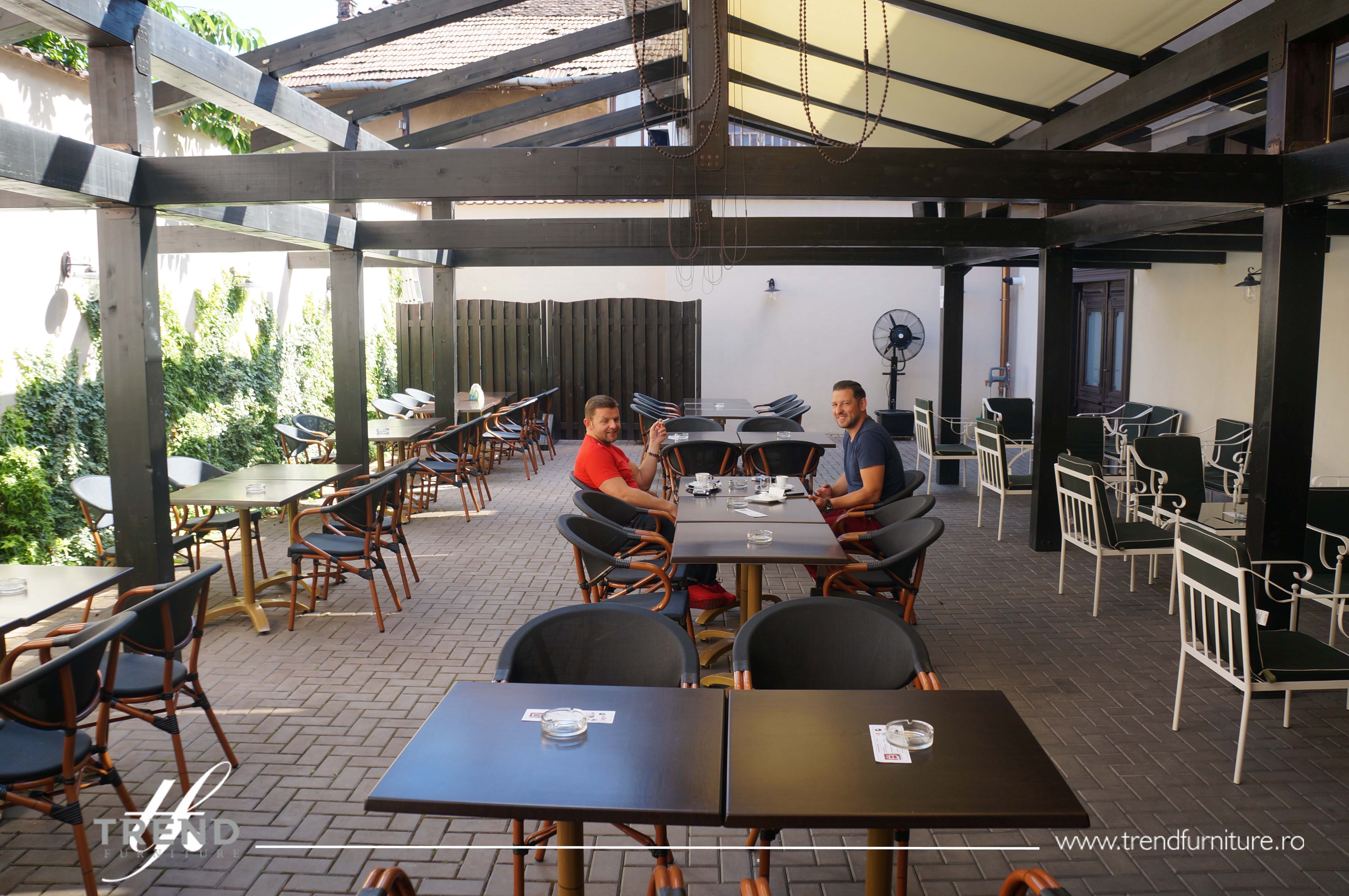 Pentru terase, se recomandă utilizarea mobilierului outdoor rezistent la intemperii, din materiale precum ratan sintetic, metal tratat sau lemn de esență tare. Pentru sezonul rece, soluțiile includ încălzitoare de terasă, pergole retractabile, paravane de sticlă și pături confortabile, asigurând confortul clienților indiferent de vreme.