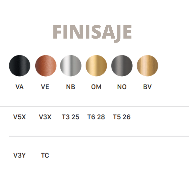 | Culori | VA-matt_anthracite, VE-matt_terracotta, NB-matt_nickel, OM-matt_gold, NO-matt_black, BV-vintage_bronze |